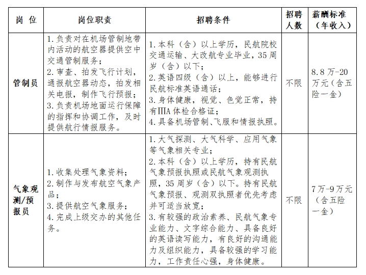 因工作需要,湘西边城机场现面向社会长期公开招聘管制员、气象观测/预报员、鸟击防范员等岗位人员。招聘有关事项公告如下。