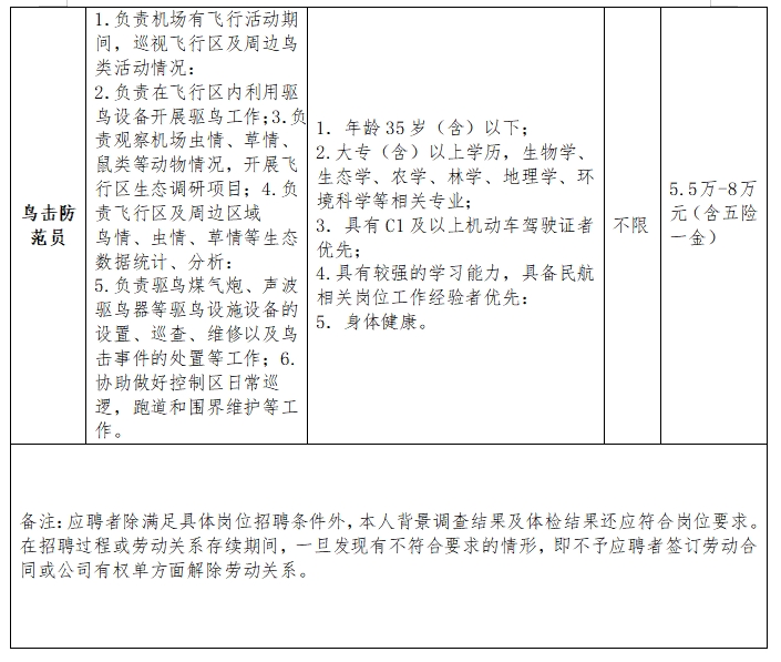 湘西边城机场长期招聘航空管制员/鸟击防范员